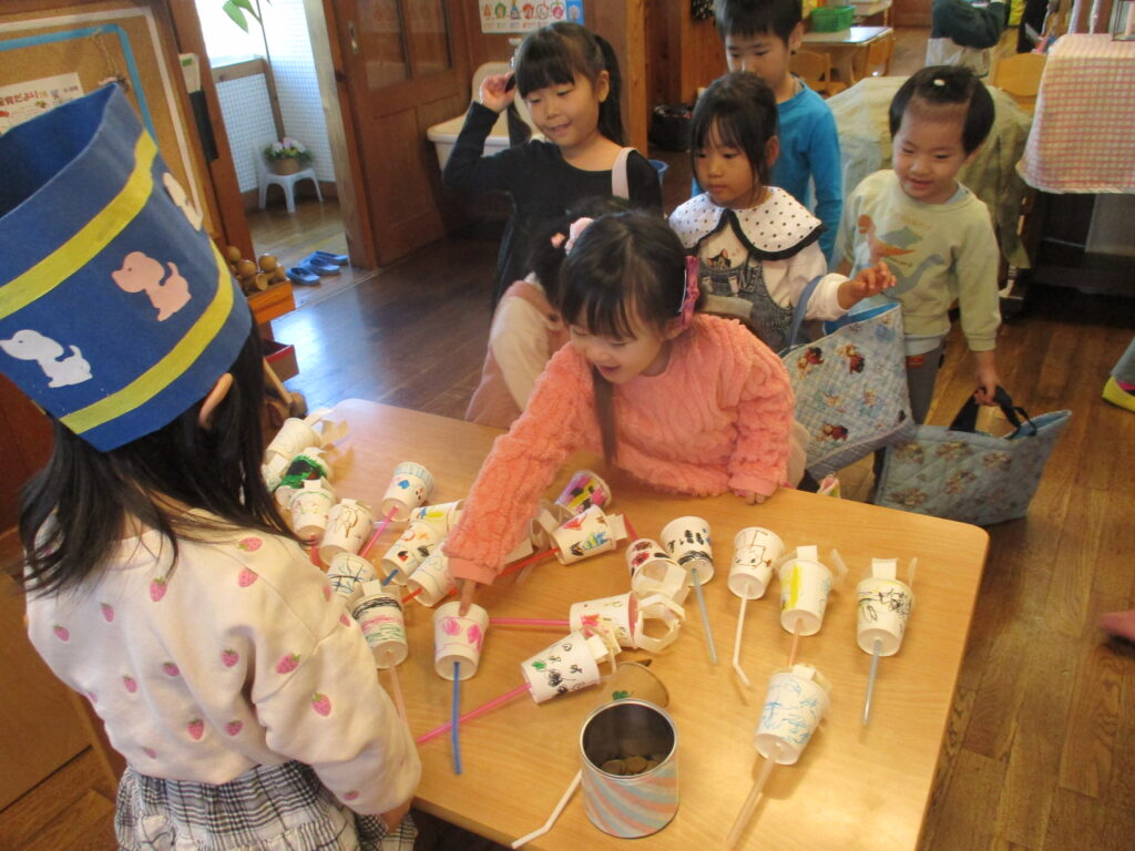 11月14日 青・黄・赤・桃組 お店屋さんごっこ 2025 11/27 お知らせ 2025年11月27日 青組さんが店員となり、桃、赤、黄、青組さんがお買い物を楽しみました。「いらっしゃいませ!」「どれがいいですか?」と子ども達同士でやりとりを楽しんでいました。 お知らせ よかったらシェアしてね! URLをコピーしました! URLをコピーしました! 11月12日 青・黄・赤組 園外保育 関連記事 11月12日 青・黄・赤組 園外保育 2025年11月27日 11月 たまご組・ひよこ組 絵画 2025年11月27日 10月8日 青・黄・赤組 水族館 2025年10月30日 10月 桃組 散歩 2025年10月30日 10月 ひよこ組 靴・靴下の練習 2025年10月30日 10月 たまご組 消防署へ散歩 2025年10月30日 9月24日 でんきの科学館 2025年9月25日 9月 青組 運動遊び 2025年9月25日 人気記事 4月の園の様子 2024年5月1日 園の様子 5月15日 黄・青組 園外保育 庄内緑地公園 2024年5月18日 お知らせ ホームページをリニューアルしました 2024年3月26日 お知らせ 桃組 お散歩 2024年5月20日 お知らせ 水族館横のカメの飼育場を見に行きました 2024年5月1日 園の様子